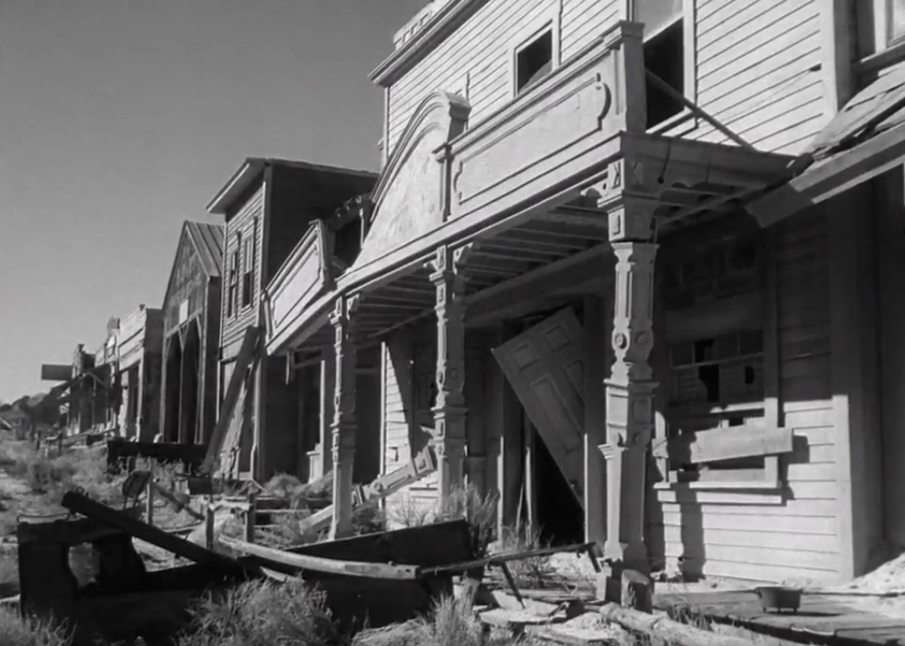 A ghost town was built for the movie by artfully destroying a set used since the 1920’s.