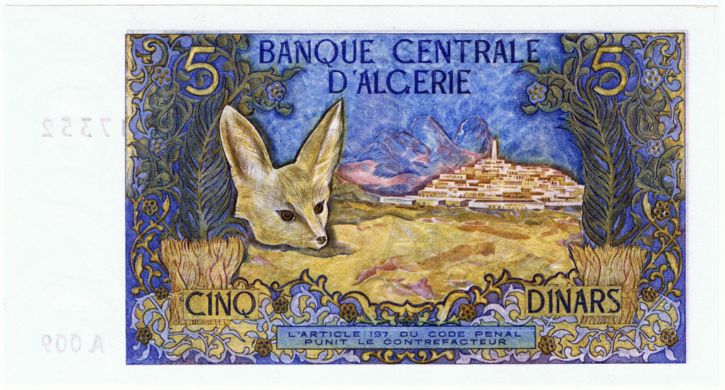 One of the first artist in Algeria to embrace Moden Art, M’hamed Issiakhem (1928-1985) Mḥemmed Isyaxem in Kabyle, his native language. At 15, he steals a grenade from American soldiers and accidentally kills two of his sisters and a nephew. He loses an arm. Issiakhem tells of this accident as the fondation of his art. His 5 Dinars bill is as cool as money gets and a favorite of notaphilists..