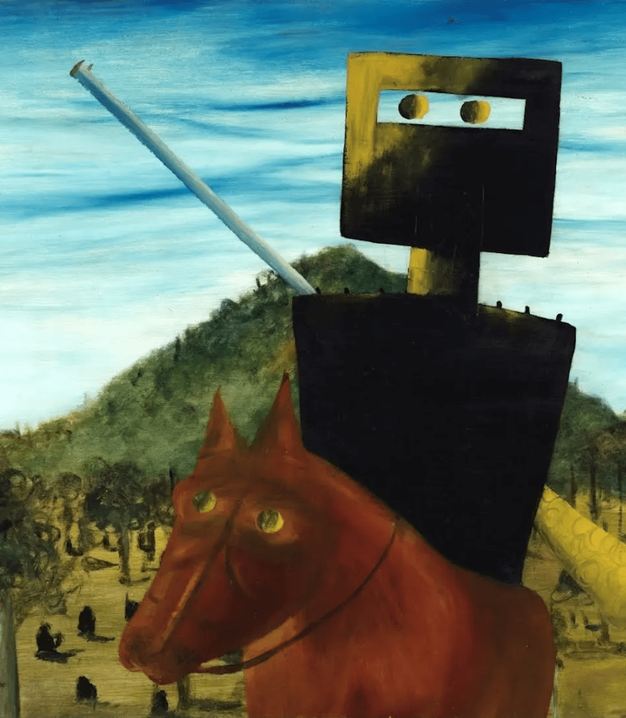 Among Australian artist Sidney Nolan‘s prodigious output, one series of painting about 19th century bushranger Ned Kelly is the dearest to Australian hearts. Nolan‘s depiction of Kelly’s real life armor has become iconic of this time in Australian History.