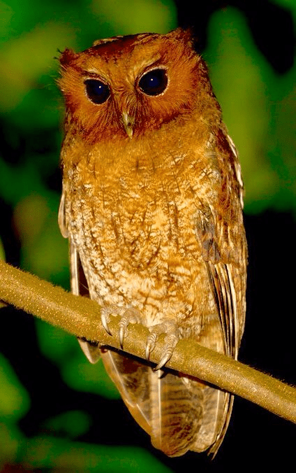 Rufescent screech owl (Megascops ingens) is found in humid forests on the Eastern slopes of the Andes