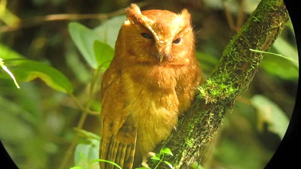 Cinnamon screech owl (Megascops petersoni) lives in the humid cloud forests of the Andes
