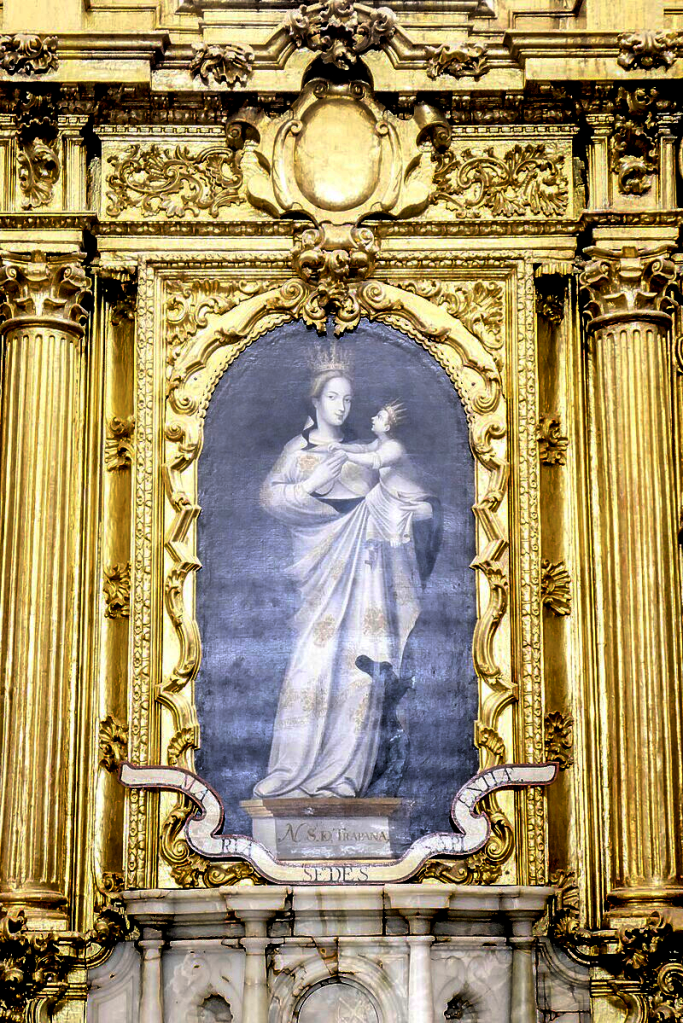 According to the excellent Mexico in Depth: “With a clear baroque and carved walls, their shelves were commissioned by Bishop Francisco Fabian y Fuero in 1773 (expanded to a third level in 1800) are made of finely carved cedar, ayacahuite (a native white pine) and coloyote wood. It also has a gold altarpiece with three floors in one end of the room, which occupies a long arched hallway, where reposes an oil painting of the Virgin of Trapani, from the fourteenth century, attributed to Italian sculptor Nino Pisano, under which reads the phrase “Maria sedes Sapientia” translated “Mary Throne of Wisdom”.