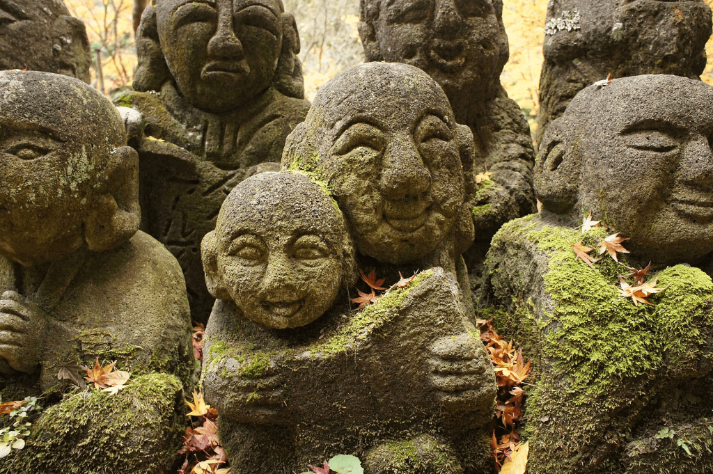 Otagi Nenbutsu-ji was originally founded by Empress Shōtoku around Kyoto’s Gion district in the year 766. Many times damaged by flood, typhoon, civil war and abandoned, the renovation started in 1955 under the direction of Kocho Nishimura. These are Rakan, the followers of Buddha, created by everyday people who made a pilgrimage to learn carving under the guidance of Kocho Nishimura. 1200 statues so far.