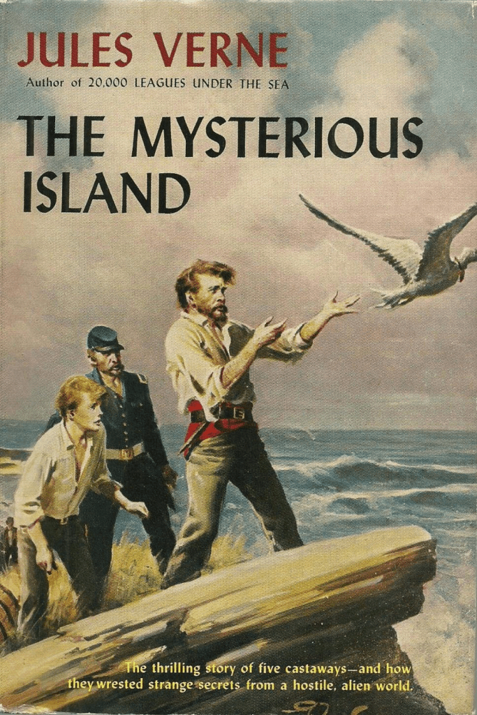 During the Civil War, four Americans and a dog escape from a Southern Confederate prison by hijacking an observation balloon. After flying days through a storm, they finally land on an island that is, it turns out on closer inspection, quite mysterious. The flora and fauna are an exotic mix of species from every continent, natural ressources and materials are plentiful and Divine Providence watches over our survivors at every turn. The island seems to be “created especially for people to be shipwrecked on” says one character. Published in 1875.