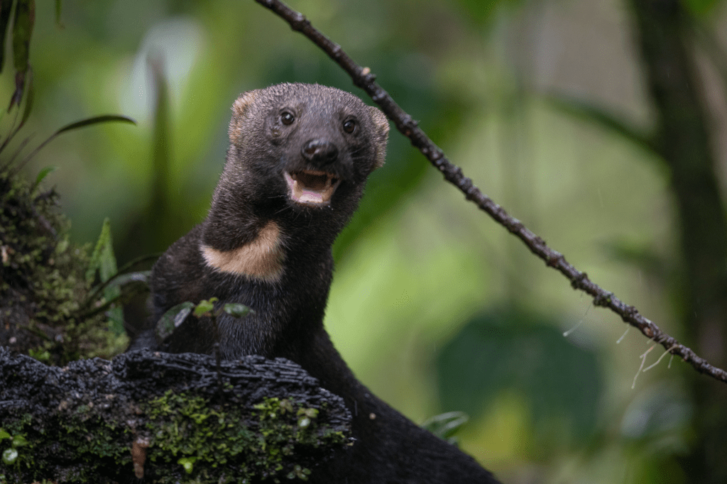 The Tayra is an unusual carnivore as it prefers daytime and is equally adept on the ground, in water and high up in the trees. Its fruit stashing behavior is also quite uncommon.