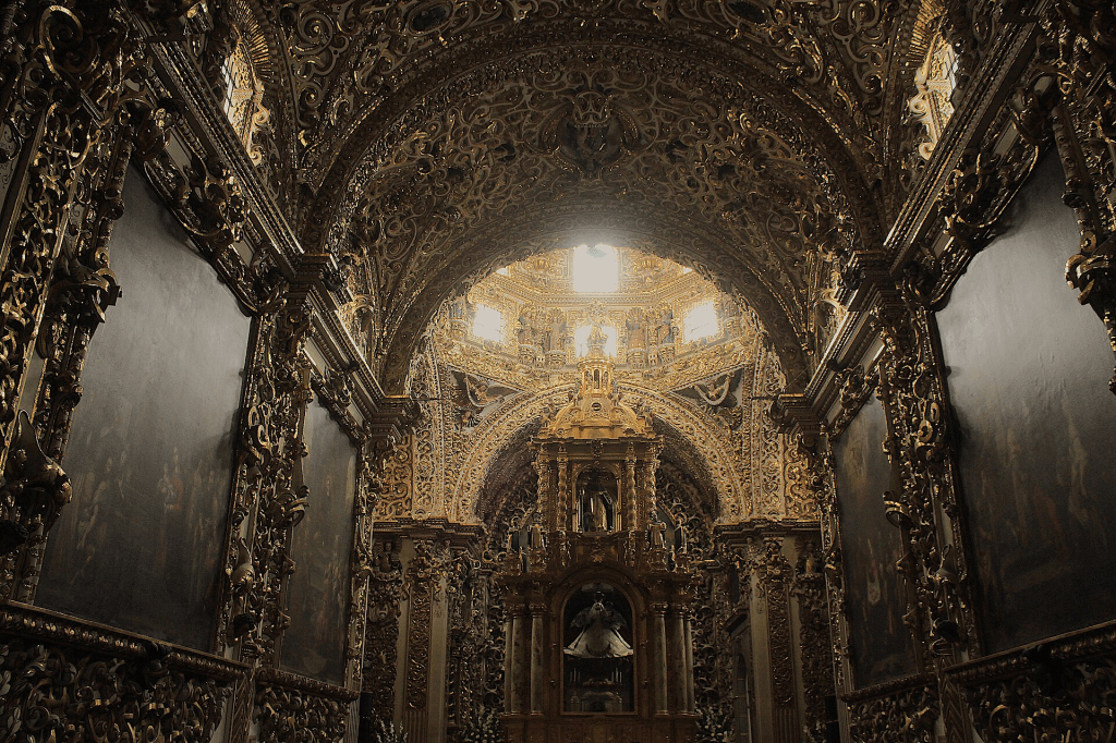 The Capilla del Rosario or Chapel of the Rosary was built between 1650 and 1690 and is located within the Roman Catholic Templo de Santo Domingo in Puebla, Mexico.